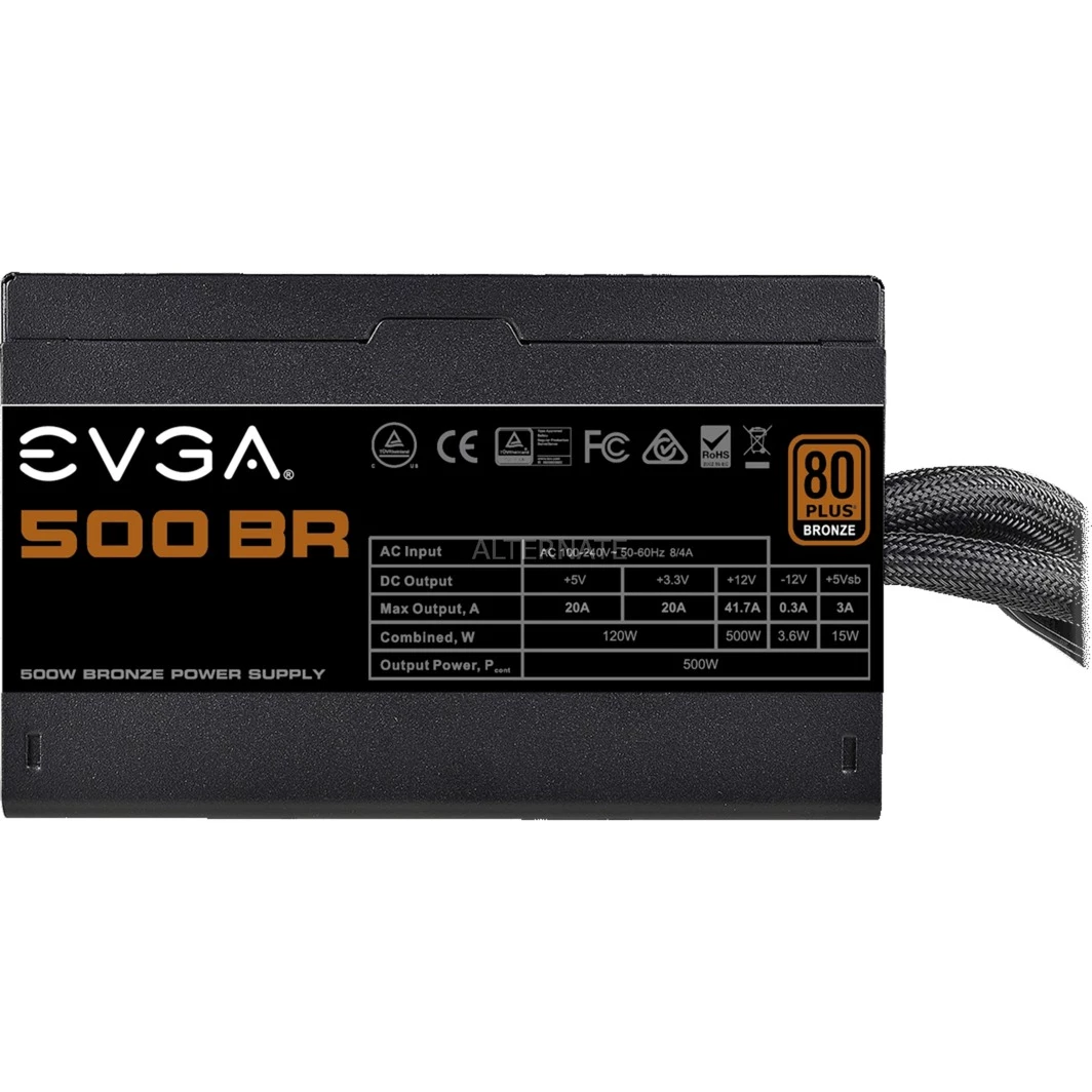 Ab 500 Watt EVGA 500 BR, 80+ BRONZE 500W, PC-Netzteil (schwarz, 2x PCIe, 500 Watt)